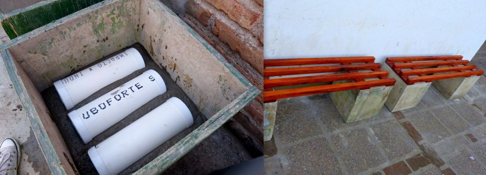 Continuando con el Proyecto "Ponele Pilas al Banco" emplazamos tres nuevos bancos con bases de pilas que fueran cementadas a fines del año pasado. En esta oportunidad usamos 4680 pilas tamaño AA y AAA y 630 pilas tamaños C y D, además de algunas baterías de celular.